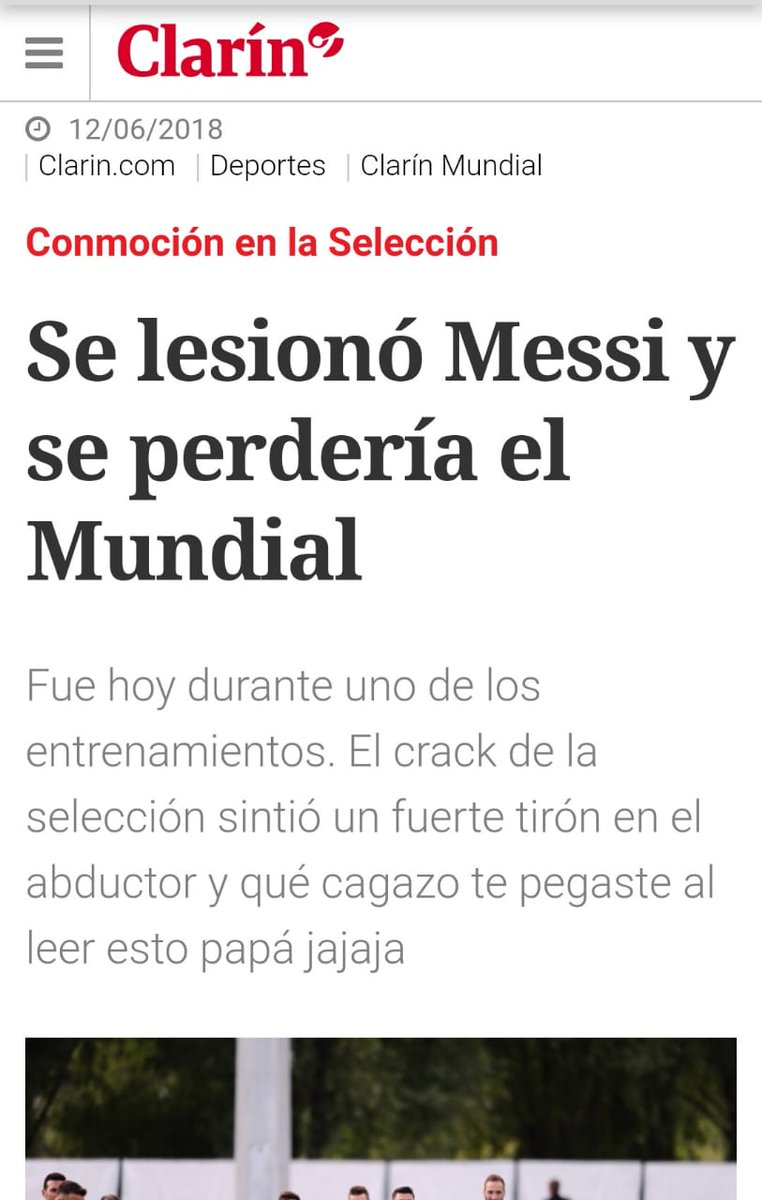 Aunque luego, cuando uno comienza a leer, descubre que se trata de una broma y el astro argentino está en perfectas condiciones para afrontar la Copa del Mundo.