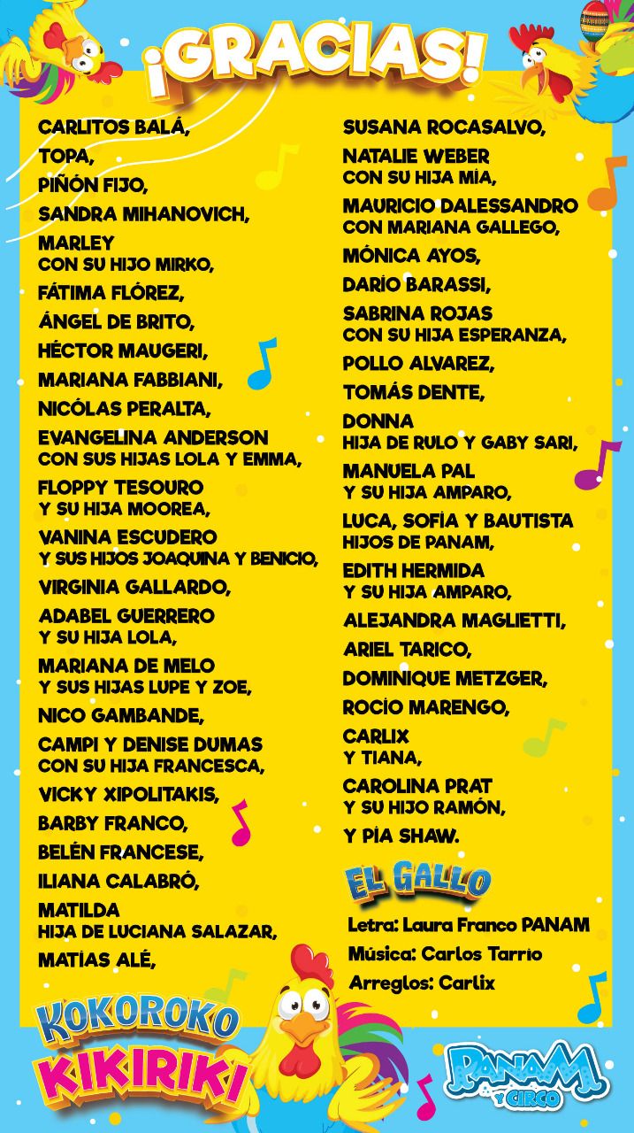 Muchas celebrities más se animaron a bailar al ritmo de "El Gallo" que escribió Panam con música de Carlos Tarrio y los arreglos de Carlix y que promete hacer magia en el corazón de los chicos y los grandes.
