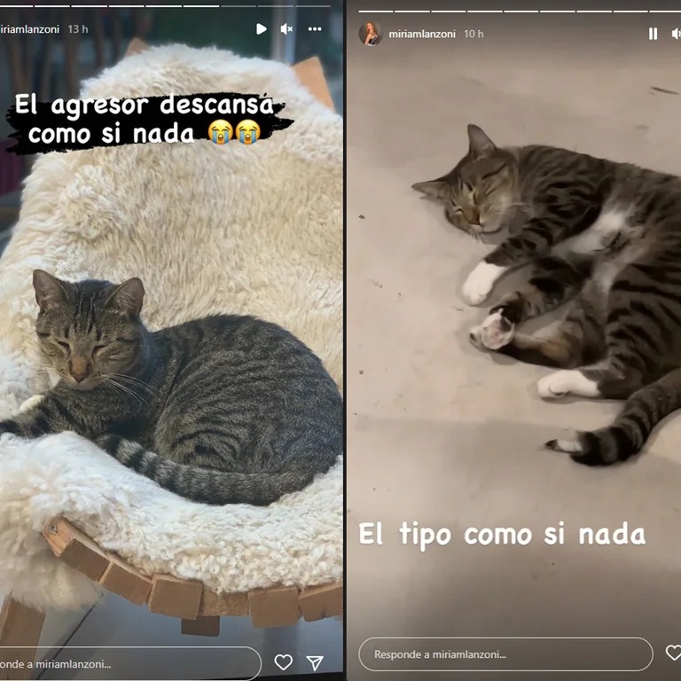 En la siguiente historia enfocó al felino durmiendo, y bromeó: “El agresor descansa como si nada”. De manera irónica, le consultó en otro video: “¿Ni un poquito de culpa sentís vos? Estás en el lugar más calentito de la casa, durmiendo”. Más allá de la humorada, aseguró que las heridas en su rostro están controladas y en tratamiento, tal como contó Berardi. En publicaciones anteriores también se mostró con su perra, y aseguró: “Acá se habla otro idioma, y cuando conoces de este amor, empezás a crecer como ser humano”.