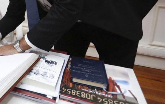 La fotografía se tomó ayer en la oficina que la vicepresidenta tiene en el Instituto Patria y dejó ver el material de lectura elegido por Cristina.