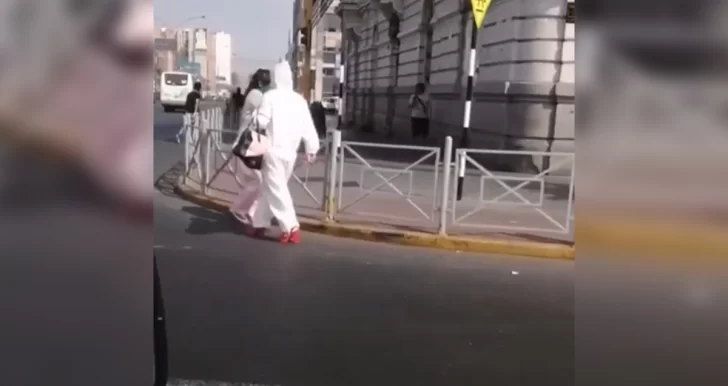 “Mira ese estilo, que buena”, se puede escuchar decir a modo de broma y con asombro a la persona que filmaba el look que la señora había decidió llevar ese día, priorizando “el cuidado” de su salud.
