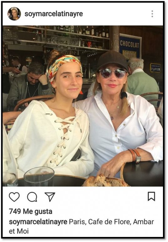 En las redes, la hija de Mirtha Legrand compartió imágenes y videos de su estadía, donde reinaron la moda y el diseño. Junto a Ámbar, tomaron algo en el famoso Café de Flore, desde donde Marcela quiso compartir una postal del momento.