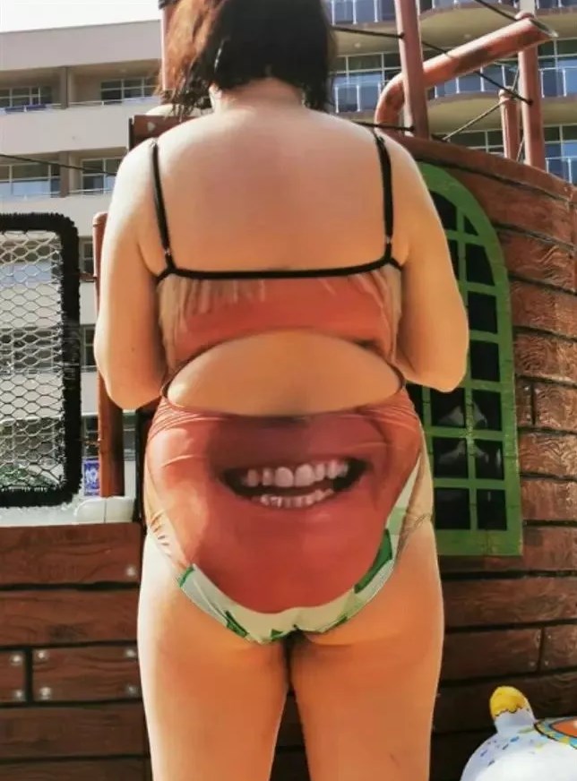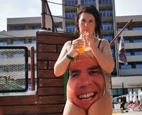 Tony Echlin le regaló a su hija de 26 años una malla con una foto de su propia cara en primer plano para que use durante un viaje en familia a Sunny Beach, Bulgaria.