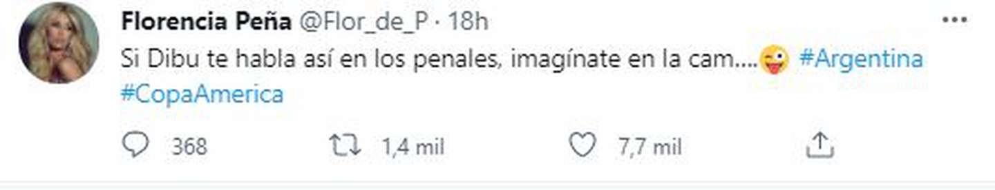 A la medianoche, luego de que se conocieran algunas imágenes con sonido ambiente en las que se podía escucha al arquero argentino intimidar a sus rivales con provocaciones e insultos, la conductora de Flor de Equipo dejó un fogoso mensaje en las redes sociales: “Si Dibu te habla así en los penales, imagínate en la cam….”.