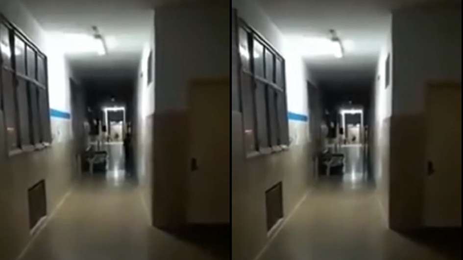 En completo asombro, el sereno logró grabar a este “niño” paseando por los pasillos del hospital, lugar en el que no hay menores de edad y, mucho menos, durante la madrugada.