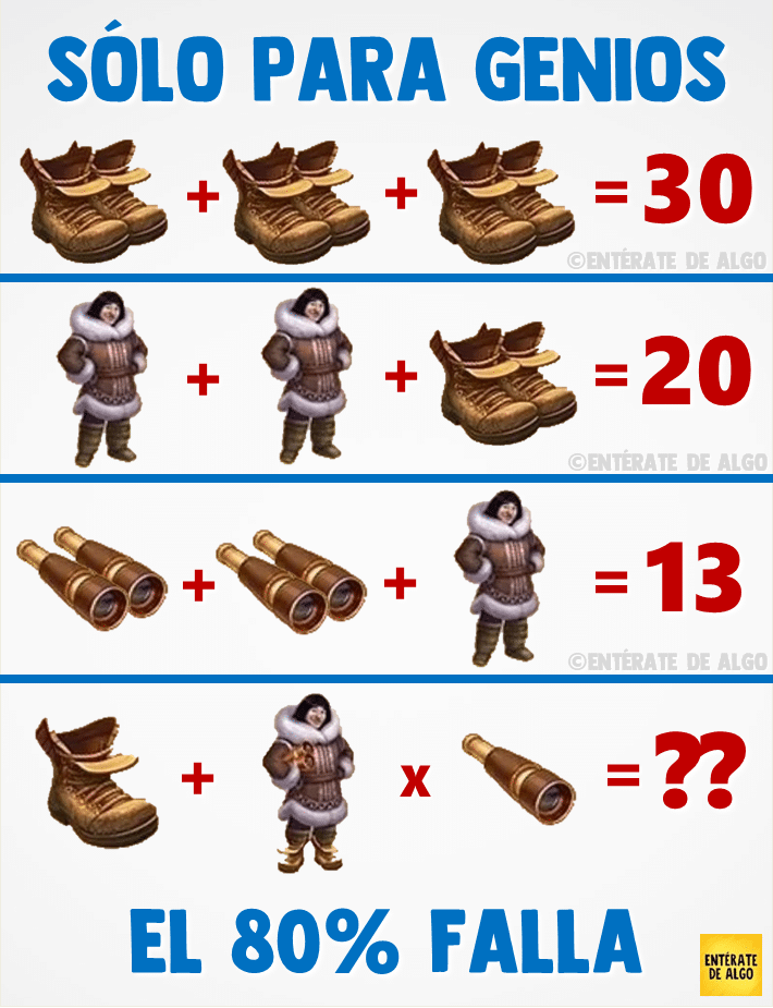 Con esquimales, unas botas y los larga vistas deberás adivinar cuántos da la suma de todos estos elementos, ¿te animás?