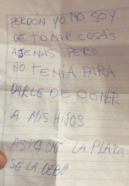 El monedero estaba tirado en el ingreso de Radio Casilda y cuando fue revisada para verificar si contaba con alguna documentación, se halló un mensaje: "Perdón, yo no soy de tomar cosas ajenas. Pero no tenía para darle de comer a mis hijos. Así que la plata se la debo".