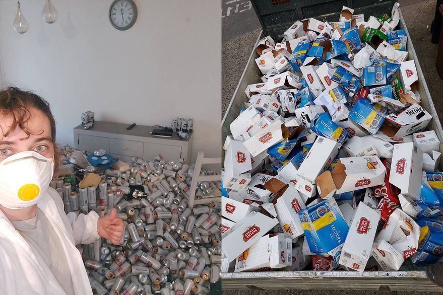 Según el profesional de la limpieza, no se podía ver el suelo porque había muchas latas de cerveza. “Saqué alrededor de 8000 envases en total”, indicó. Y agregó: “El inquilino nunca tiró la cadena. La limpieza fue interminable. Después del primer día, ni siquiera parecía que hubieran cambiado las cosas”.