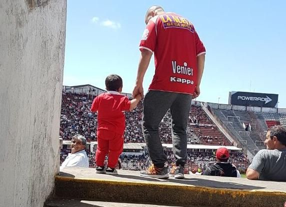 A Mateo le falta parte de su brazo izquierdo, pero eso no le impidió aplaudir y acompañar todos los cánticos de la hinchada, como si tuviera años de experiencia en las tribunas.