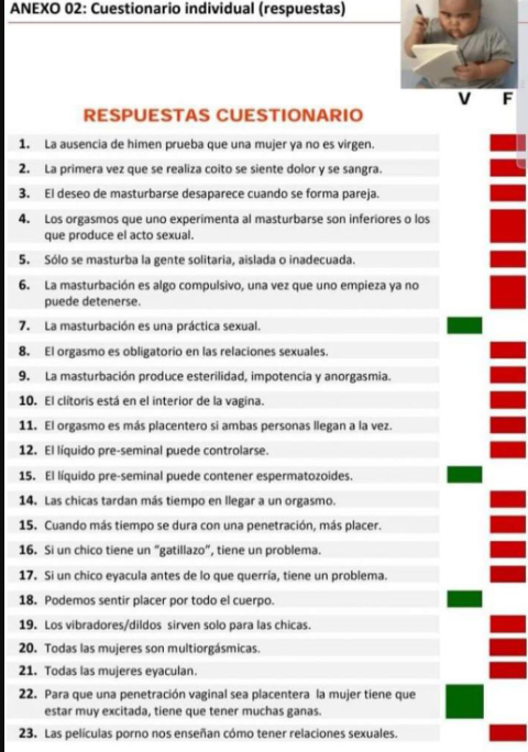 El cuestionario era “Verdadero o Falso”, donde el docente hizo consultas como “¿solo se masturba la gente solitaria, aislada o inadecuada? ¿Todas las mujeres eyaculan? ¿Las películas porno nos enseñan cómo tener relaciones sexuales?”.