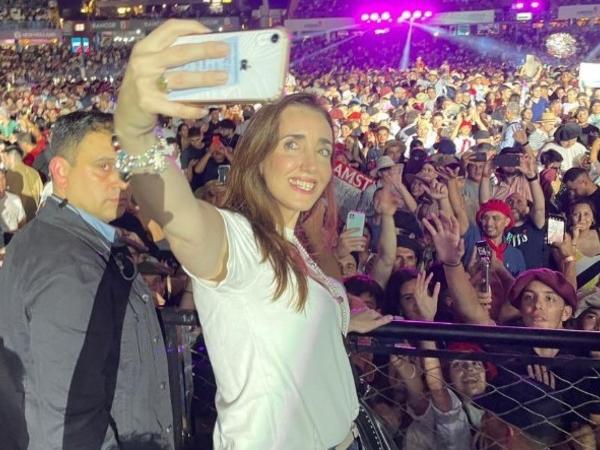 Pero durante el show de Los Carabajal, que estaban tocando en ese momento en el festival, se percibió un momento incómodo. Durante la transmisión televisiva del festival se escuchó al cantautor Peteco Carabajal decir dos veces “No se paren que no ha llegado nadie”, mientras las cámaras mostraban a la referente de La Libertad Avanza saludando a la gente. “No ha llegado nadie”, repitió el músico santiagueño sin que la transmisión televisiva lo enfocase.