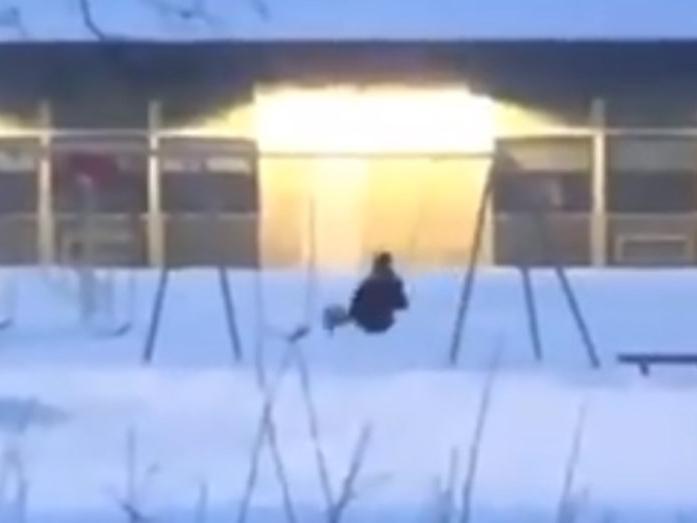 Un video está explotando en las redes. Se trata de imágenes publicadas en la red social Tik Tok en el que se ve a una persona columpiándose en una hamaca sobre la nieve. El video es corto y está filmado desde lejos.