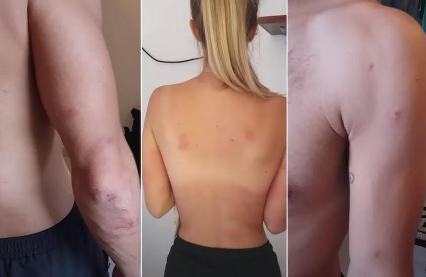 Entonces, Dan siguió los pasos de su novia y atravesó el puente corriendo para refugiarse con los aldeanos del lugar que enseguida prendieron una fogata para ahuyentar a los insectos. “Sé que lo mejor no es correr, pero entré en pánico cuando las vi adentro de mi remera”, enfatizó Dan mientras se quitaba la remera y los aguijones.