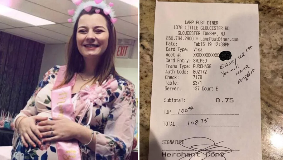 Todo comenzó cuando el oficial escuchó por casualidad una conversación en la que Courtney English les contaba a los comensales que será madre primeriza el primero de abril.