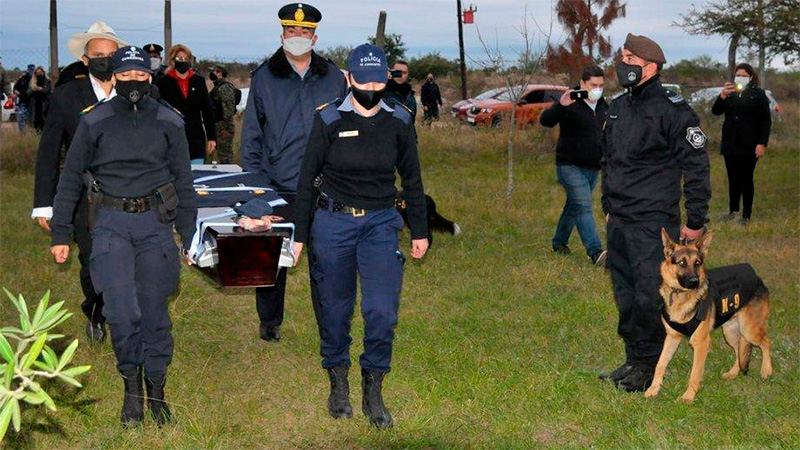 El animal fue despedido con honores en un acto que fue llevado adelante en la División de Canes, del que participaron el jefe de la Policía de Corrientes, Félix Barboza, entre otros funcionarios.
