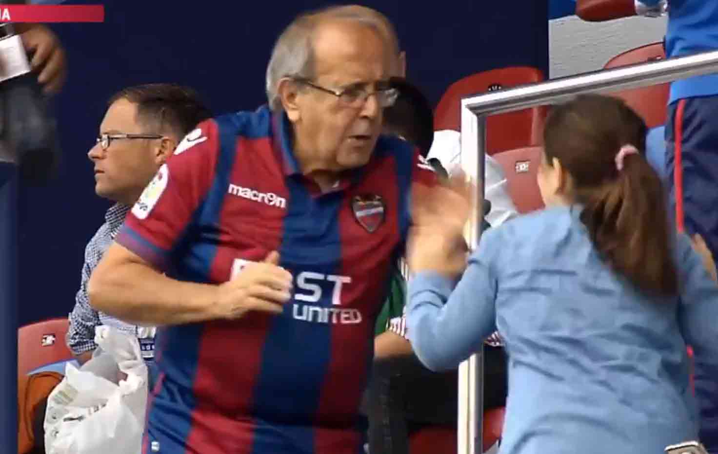 Durante la transmisión de los partidos de fútbol es frecuente que los canales filmen a chicas lindas o banderas curiosas. Sin embargo, lo que ocurrió en un partido del Levante emociona a España y atraviesa fronteras. Las imágenes de un abuelo haciendo juego de palmas con su nieta conmovieron a usuarios de todo el mundo.