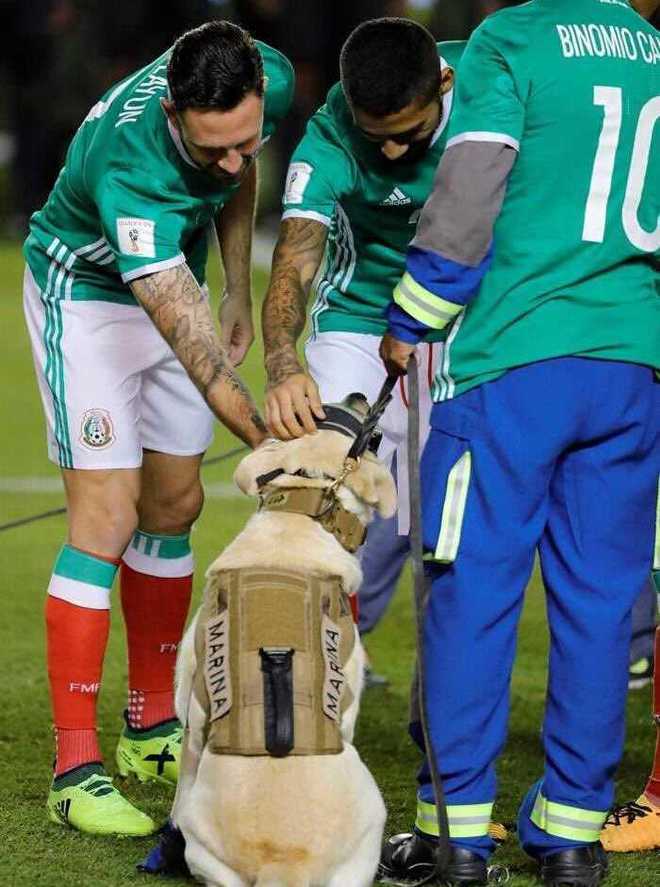 Frida tuvo un merecidísimo homenaje. La perra que conmovió a todos y se hizo famosa en el mundo entero por su labor de rescate tras el terremoto ocurrido hace unas semanas en México fue la invitada de honor en San Luis Potosí, donde la selección de dicho país, ya clasificada al Mundial, venció 3-1 a Trinidad y Tobago por una nueva fecha de Eliminatorias.