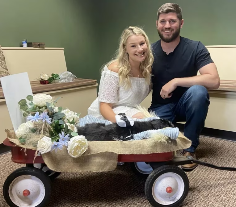 Una pareja decidió tener un tierno detalle con su perro Bear, quien en las semanas previas a su boda se enfermó y fue ingresado en cuidados intensivos. En lugar de una ceremonia en un salón de fiesta o en iglesia decidieron adelantar la fecha y casarse en la veterinaria para vivir ese momento tan especial con su compañero de vida.