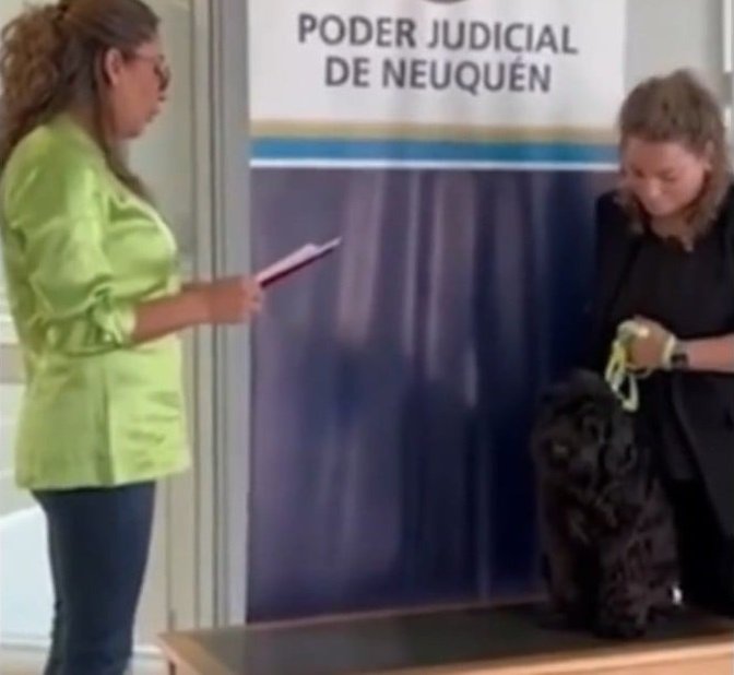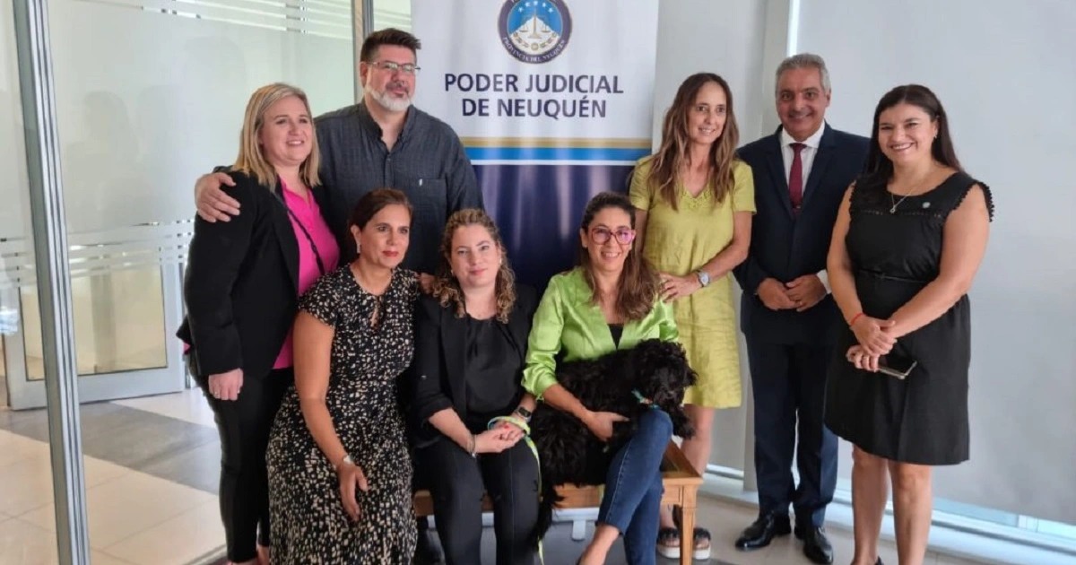 Las autoridades del Poder Judicial de Neuquén le tomaron juramento a un perro, de raza labradoodle, que se desempeñará en el Área Infanto Juvenil de esa dependencia.