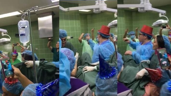 En las imágenes se puede ver cómo los médicos rodean a la mujer que da a luz. A solo unos segundos de tener a su bebé, empiezan a gritar en cuenta regresiva por año nuevo. Finalmente, cuando la mujer tener a su hijo, toman al pequeño de una manera aparentemente bruta.