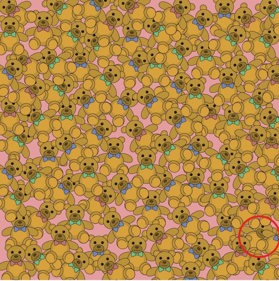 Otra ayuda, esta vez un poco más grande, consta de buscar un determinado tipo de oso entre tantos. Es importante que detectes a todos aquellos cuyas partes del cuerpo estén tapadas por otros osos, de esta manera podrás ir marcando un camino hacia el tan preciado osito teddy.