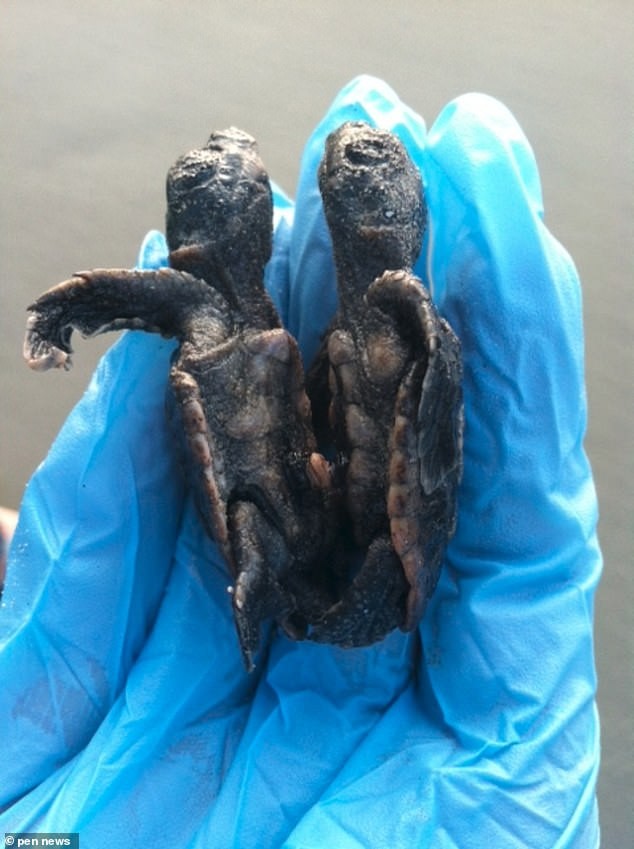 Una tortuga de mar bebé con dos cabezas fue hallada en Carolina del Sur, Estados Unidos por la Patrulla de Tortugas Marinas Hilton Head Island que trabaja realizando un inventario de los nidos de esta especie en la Isla Hilton de Carolina del Sur.