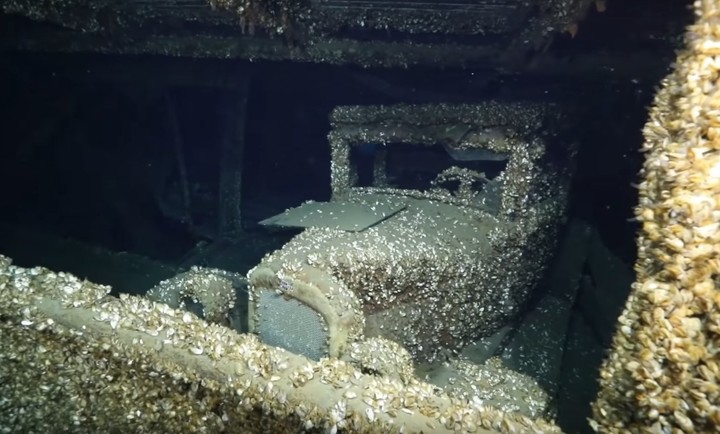 Una cupé Chevrolet de 1927 permanece aún "estacionada" dentro del Manasoo, una embarcación que naufragó en 1928, en la Bahía Georgiana del lago Huron, en Canadá.