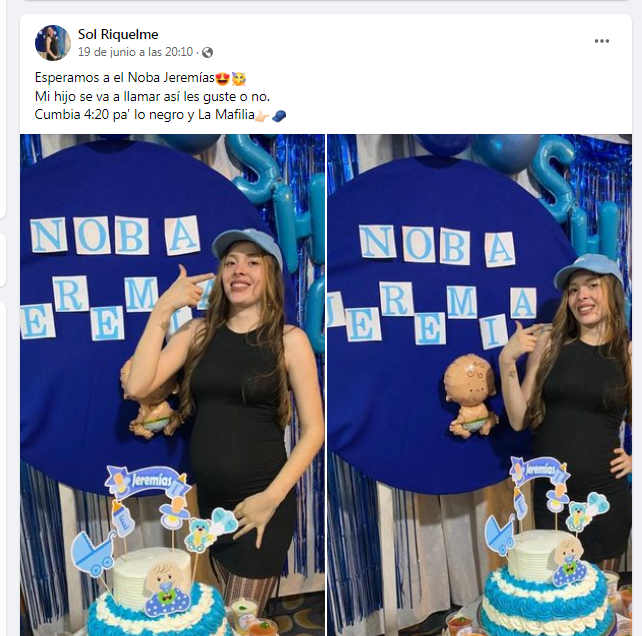 “Te espero con ansias mi Noba Jeremías, mi bebé”, escribió Sol Riquelme, la mamá en cuestión, quien compartió en Facebook fotos del baby shower.