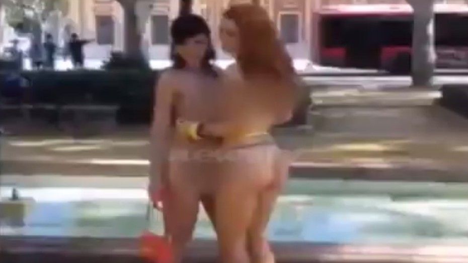 Dos actrices desnudas sorprendieron a los transeúntes en el centro histórico de la ciudad a plena luz del día. Mirá el video.