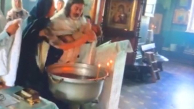 Una madre corrió en ayuda de su hijo pequeño después de que un sacerdote "sádico" lo sumergiera violentamente en agua durante su bautismo. El inquietante video muestraal sacerdote ortodoxo ruso Fotiy Necheporenko sumergiendo por la fuerza al niño de un año desnudo en la fuente.