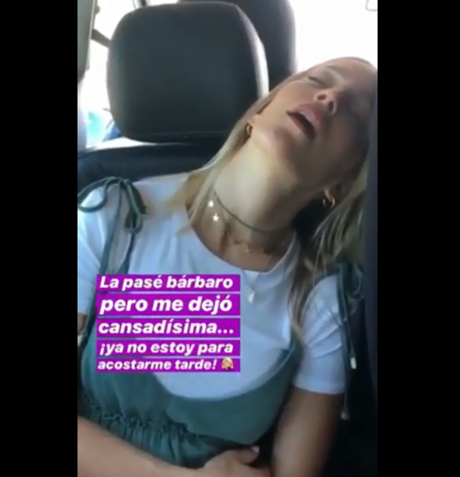 En la grabación, se puede ver a Luisana Lopilato sentada en el auto mientras volvía del concierto y como estaba cansada no aguantó a llegar a su casa y se durmió en el vehículo con la boca abierta.