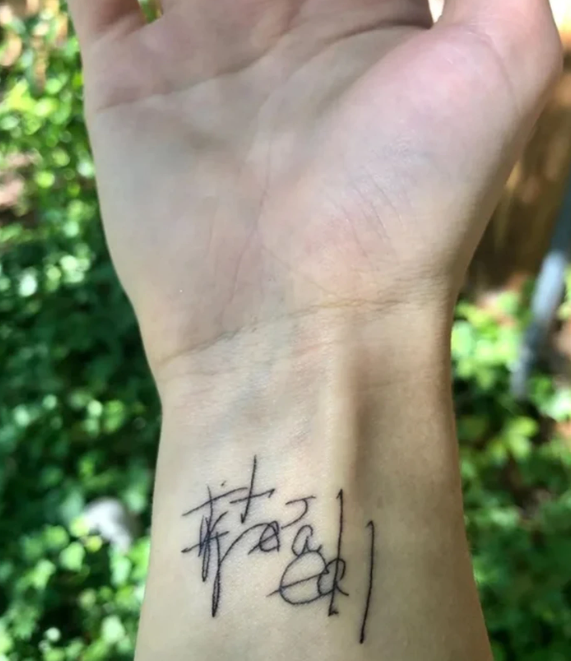 En el posteo de Instagram la sobrina incluyó varias imágenes, entre ellas un tatuaje del garabato que dice “es real” que su tía escribió en un cuaderno al despertarse del coma. También hay una foto con su tía y el libro que publicó contando su experiencia.