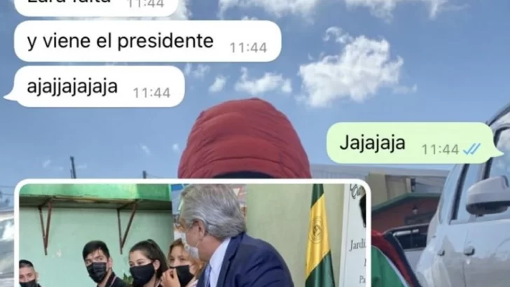 En la conversación se podía ver una fotografía de Alberto Fernández dialogando con alumnos junto con la burla de un compañero, quien le dijo: "Falta Lara, viene el presidente".