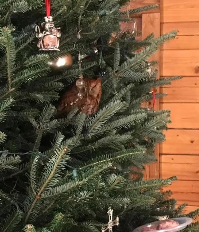 Una familia que estaba cenando en su vivienda de Estados Unidos cuando, de pronto, sintieron un extraño sonido que provenía de su árbol de Navidad. Al acercarse, descubrieron algo inquietante: un búho que vivía dentro del elemento decorativo.