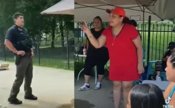 Luego, la mujer le explica al policía lo ocurrido. "Antes sonó música en inglés y [la dueña] no dijo nada. Pero nosotros teníamos música en español y ella vino con mala actitud y desconectó nuestro altavoz para llevársela. ¿Sabes por qué te llamó? Porque le dije: ‘No eres una mujer de negocios. No eres inteligente, porque nosotros somos clientes que pagamos’. Debería haberse acercado a nosotros como tú y pedirnos ‘por favor, apaguen la música’. Pero no, vino con una mala actitud y nos desconectó el altavoz a la fuerza".