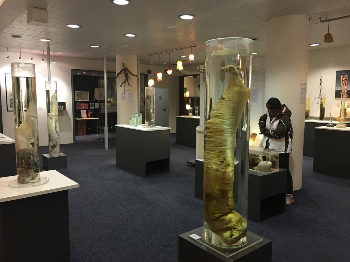 La entrada del museo, recibe a los visitantes con un gran pene de cachalote, de 1.70 metros y un peso de 75 kilos. En las antípodas de éste, se encuentra el más diminuto: un miembro de hámster de tan solo dos milímetros de longitud. Y desde 2011, entró el primer pene humano.