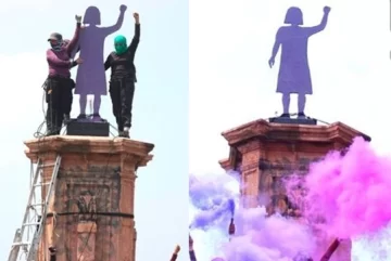 Colectivos feministas instalaron este sábado una estatua en honor a "las mujeres que luchan" en el pedestal donde el Gobierno de la Ciudad de México retiró el año pasado la efigie de Cristóbal Colón.