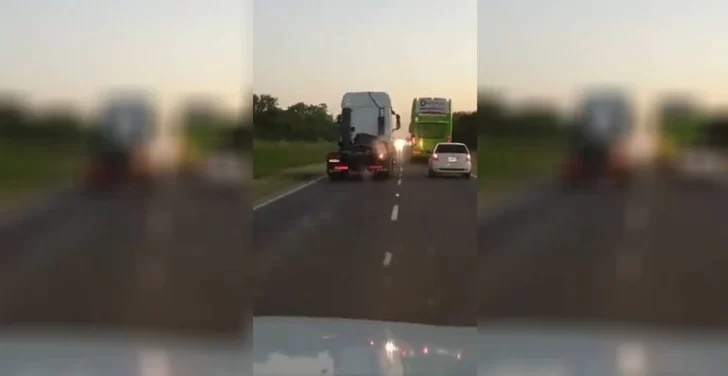 Un camionero casi causa una tragedia en la ruta 11 al tratar de pasar a un micro haciendo maniobras imprudentes. El hecho ocurrió este domingo y quedó grabado por el acompañante de una camioneta que iba detrás y se percató del peligro que significaba el camión para el resto de los vehículos.