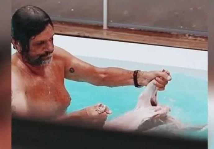Además, en el video se puede ver como Álvarez Castillo está dentro de la piscina y juega con el animal muerto.