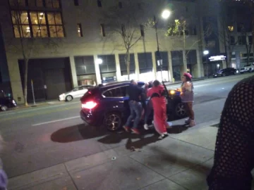 Shiratsuki junto a sus acompañantes abrieron entonces la puerta del vehículo, apartaron al hombre de la mujer y lo sacaron fuera del vehículo, reteniéndolo hasta la llegada de los agentes del orden.