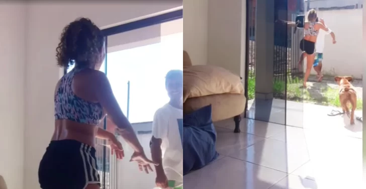 Una joven enfermera estaba grabándose mientras bailaba en el interior de su casa de la ciudad de Paranaguá, en Brasil, y una desagradable interrupción la obligó a reaccionar de manera extrema.