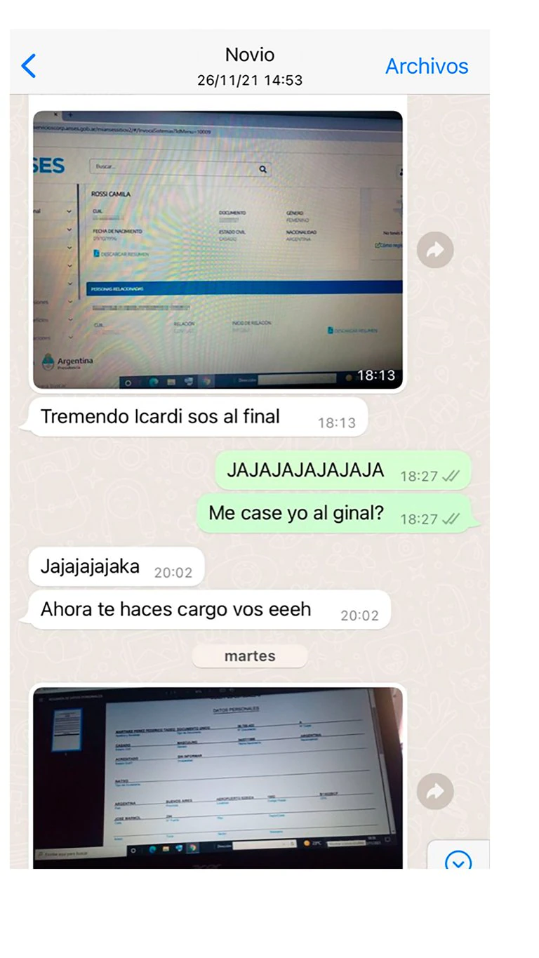 El hecho se hizo público cuando Flor decidió hacer catarsis en las redes sociales y mostró una captura de la conversación de Whatsapp que había mantenido con su novio. Es que tras asistir a la boda de su mejor amigo como testigo, el jueves 11 de noviembre, Federico se enteró dos semanas después que hubo una equivocación en la carga de datos por parte de la ANSES y quedó registrado como “marido” y el casado como “testigo”.