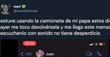 En el video de menos de un minuto que compartió la joven de Buenos Aires se puede ver el intercambio de mensajes entre ella y Juan. “Lo prendí le di dos pitadas. Este es de chistosos. Drogaste a papá hija”, dice el hombre antes de largar una carcajada.