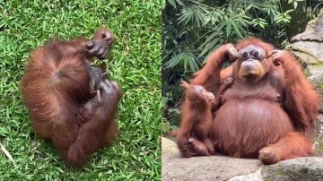 Más adelante en el clip, se ve al animal apoyado contra un árbol, con las gafas puestas y luciendo decididamente genial. Al final, sin embargo, la orangutana pierde el interés en ellas y las devuelve, lanzándolas de regreso.