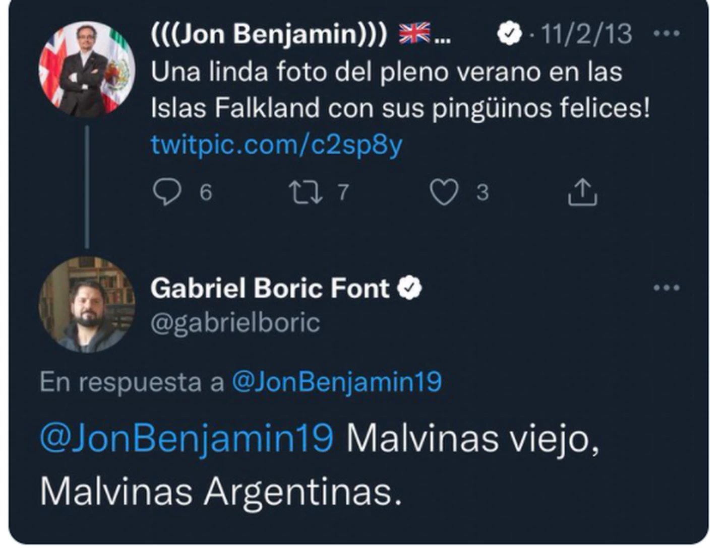 Un tuit que el presidente electo de Chile, Gabriel Boric, escribió hace 8 años se hizo viral en las últimas horas. En el mensaje, deja en claro su firme posición de respaldo a la soberanía argentina sobre las Islas Malvinas.