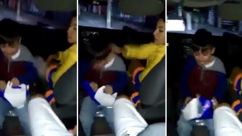 En las imágenes, que fueron compartidas a través de Facebook, se puede ver a la joven maltratando e insultando a un niño que viaja junto a ella en un auto.