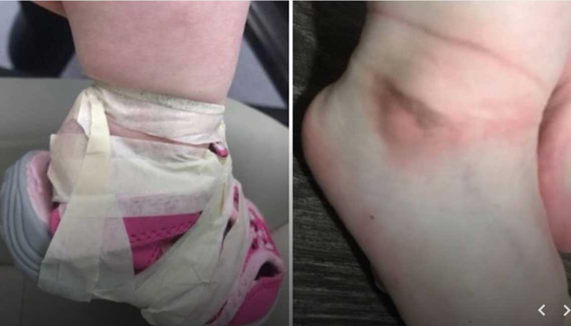 Y, como si eso no fuera suficientemente malo, la cinta estaba tan apretada que la menor quedó con moretones en sus tobillos.