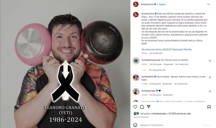 El posteo que alarmó a todos fue publicad en la cuenta oficial de “Bruta Cocina”, donde tiene más de un millón de seguidores. Fue por eso que la falsa y triste noticia se viralizó en pocos minutos y llegó a los portales.