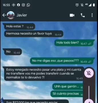 La mujer, ya habiéndose dado cuenta de la situación, decidió chequearlo y seguirle un poco juego. Ante esto, ella le pidió a su pareja, Javier, el CBU al que debía pasar la plata. El estafador de manera casi instantánea le pasó el alias correspondiente y esperó el dinero.