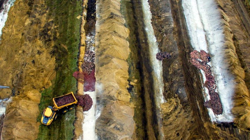 La cadena danesa DR publicó un escalofriante video en el que se aprecian grandes cantidades de cadáveres de visones a la vista, que anteriormente fueron enterrados en un campo de entrenamiento militar en Holstebro, al noroeste del país.
